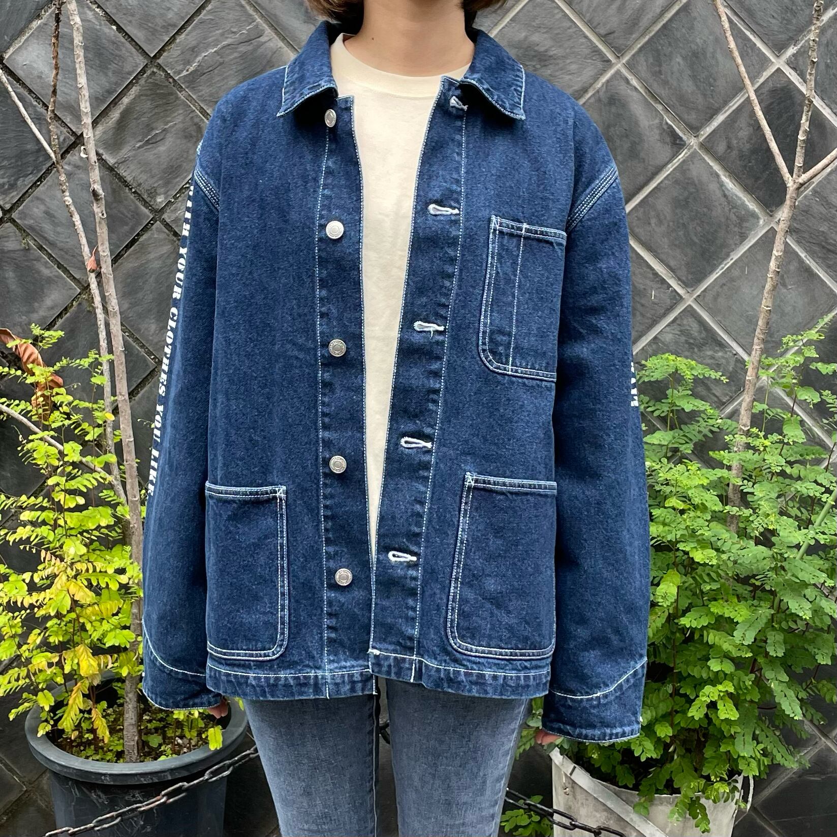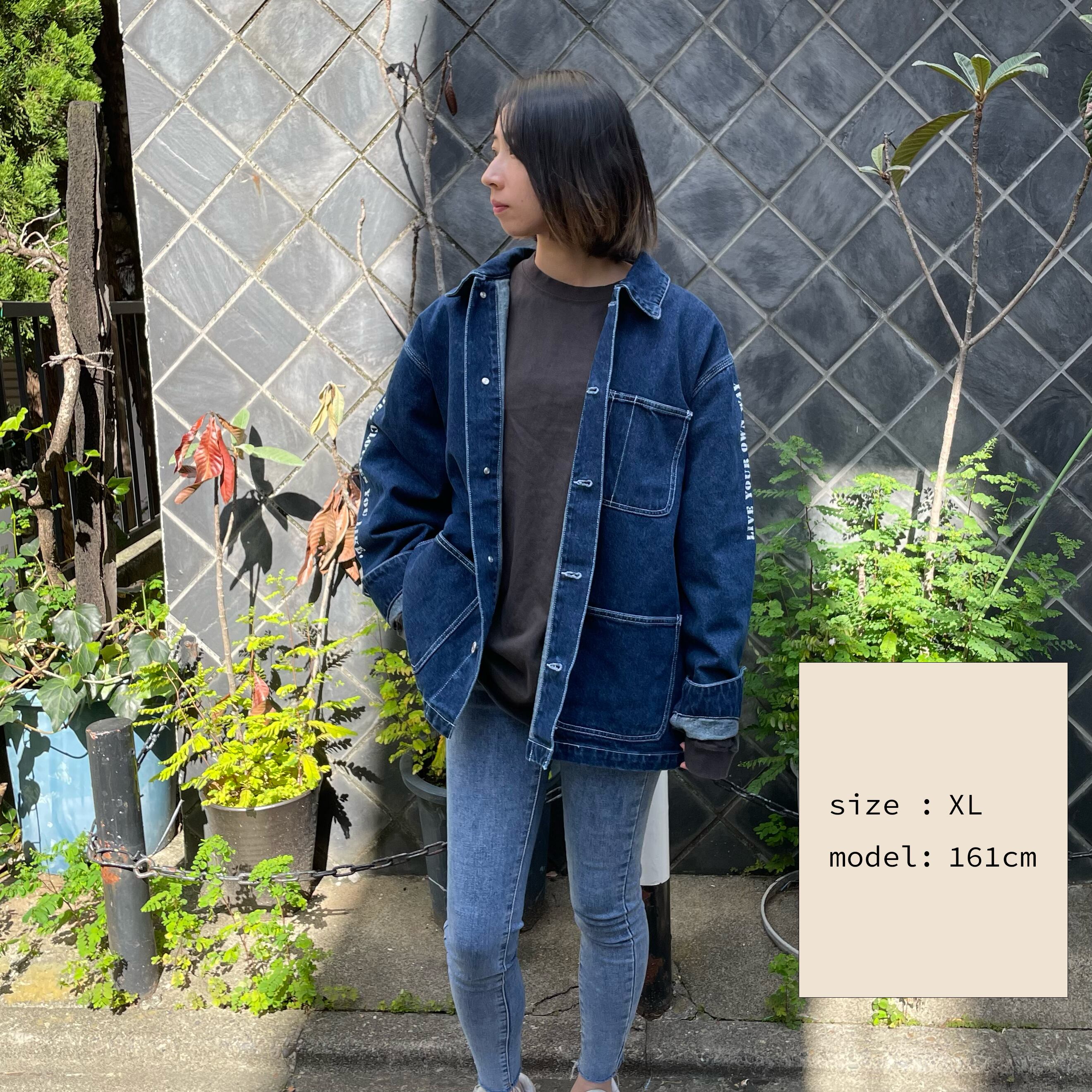 一方で、肩落ちやルーズなサイズ感を出すことで今っぽさも感じられるデニムカバーオールジャケットとなっております。
