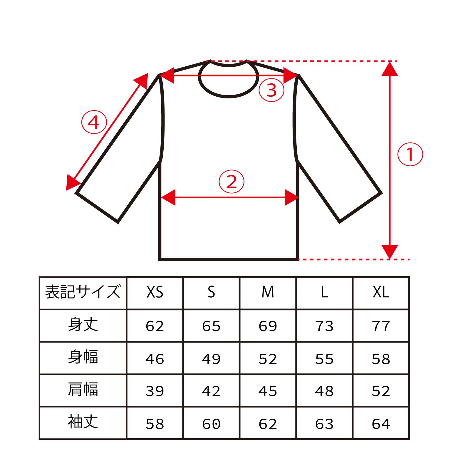 XS〜XLまでのサイズを用意しておりますので、好みのサイズ感で着ていただけたらと思います。
